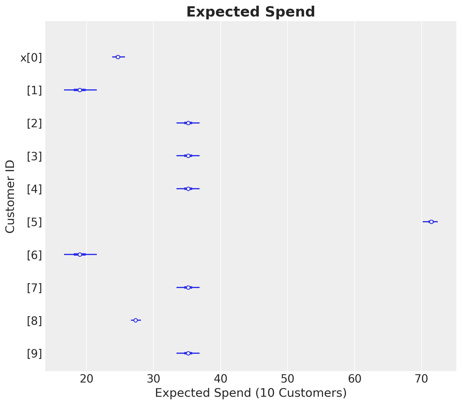 ax.set(xlabel="Expected Spend (10 Customers)", ylabel="Customer ID")