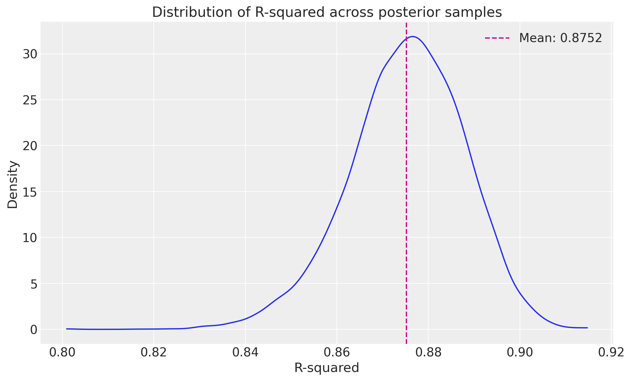 ax.set_title("Distribution of R-squared across posterior samples")