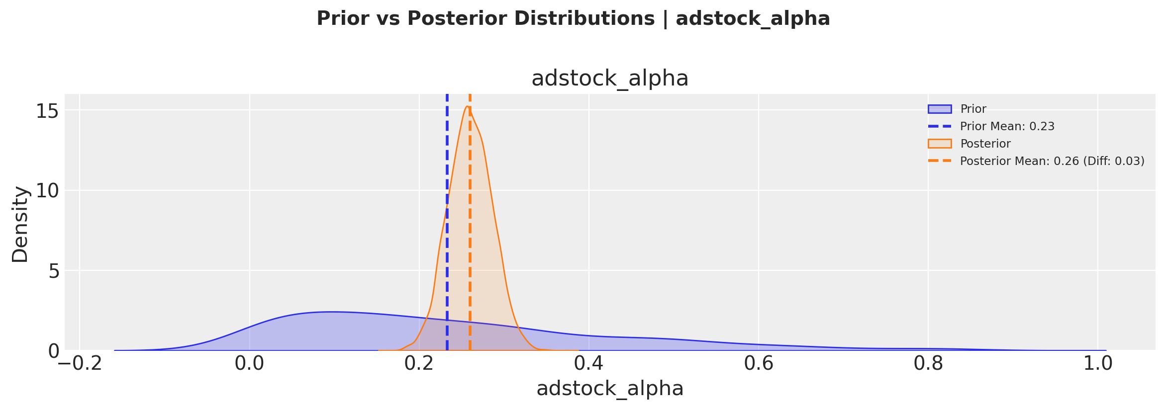 # Plot prior vs posterior for adstock parameter