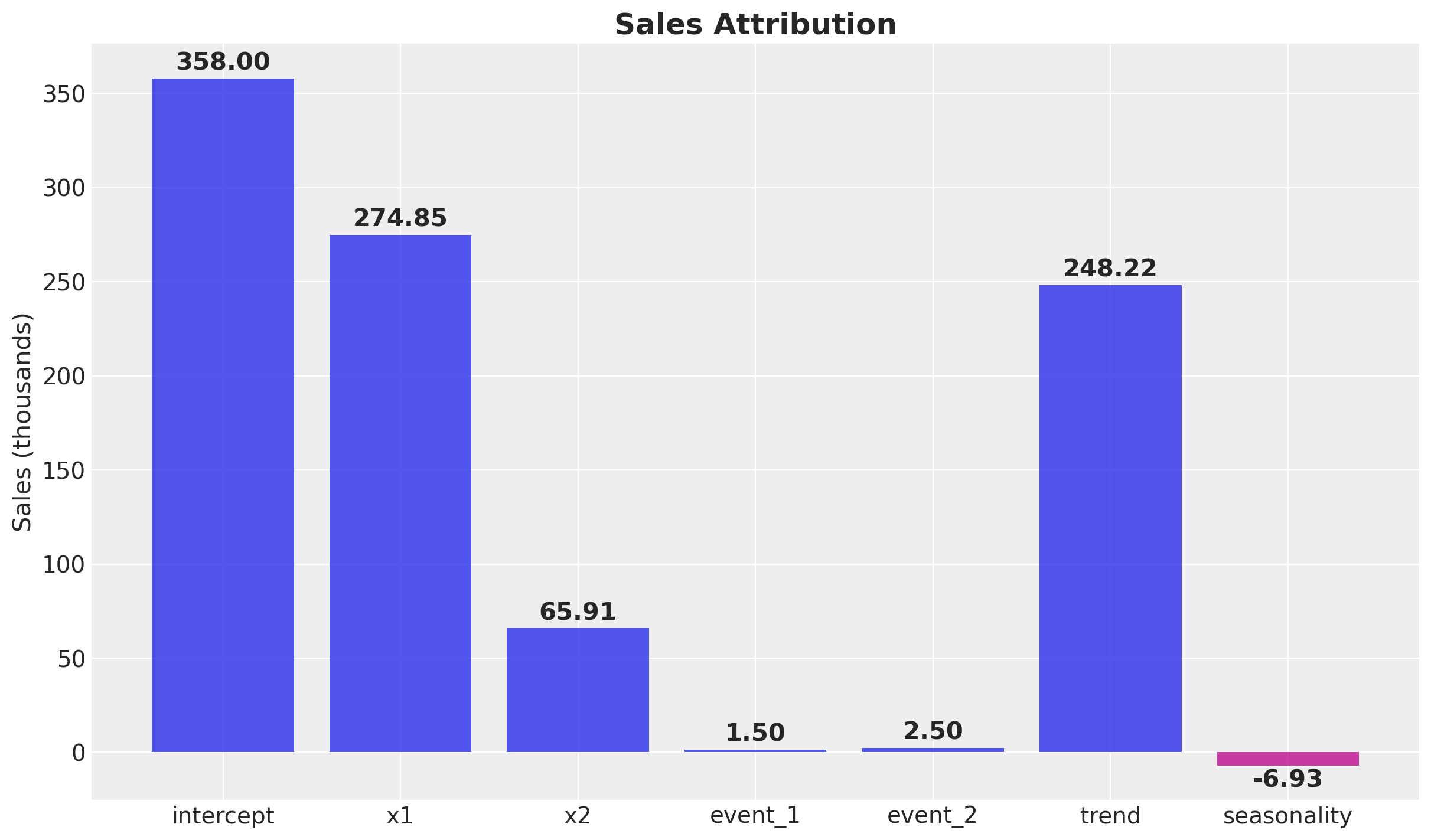 Time-varying Intercept: Capture time-varying baseline contributions in your model (using modern and efficient Gaussian processes approximation methods). That is, we allow the intercept term \(\alpha = \alpha(t)\) to vary over time. See mmm_tvp_example.